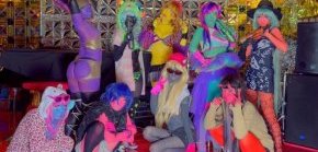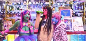 Miako with painted girlfriends in one of Tokyo Café
